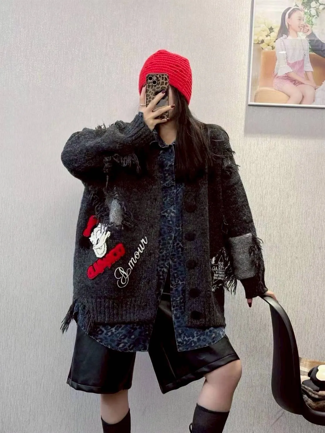 唐老鴨設計感針織開衫