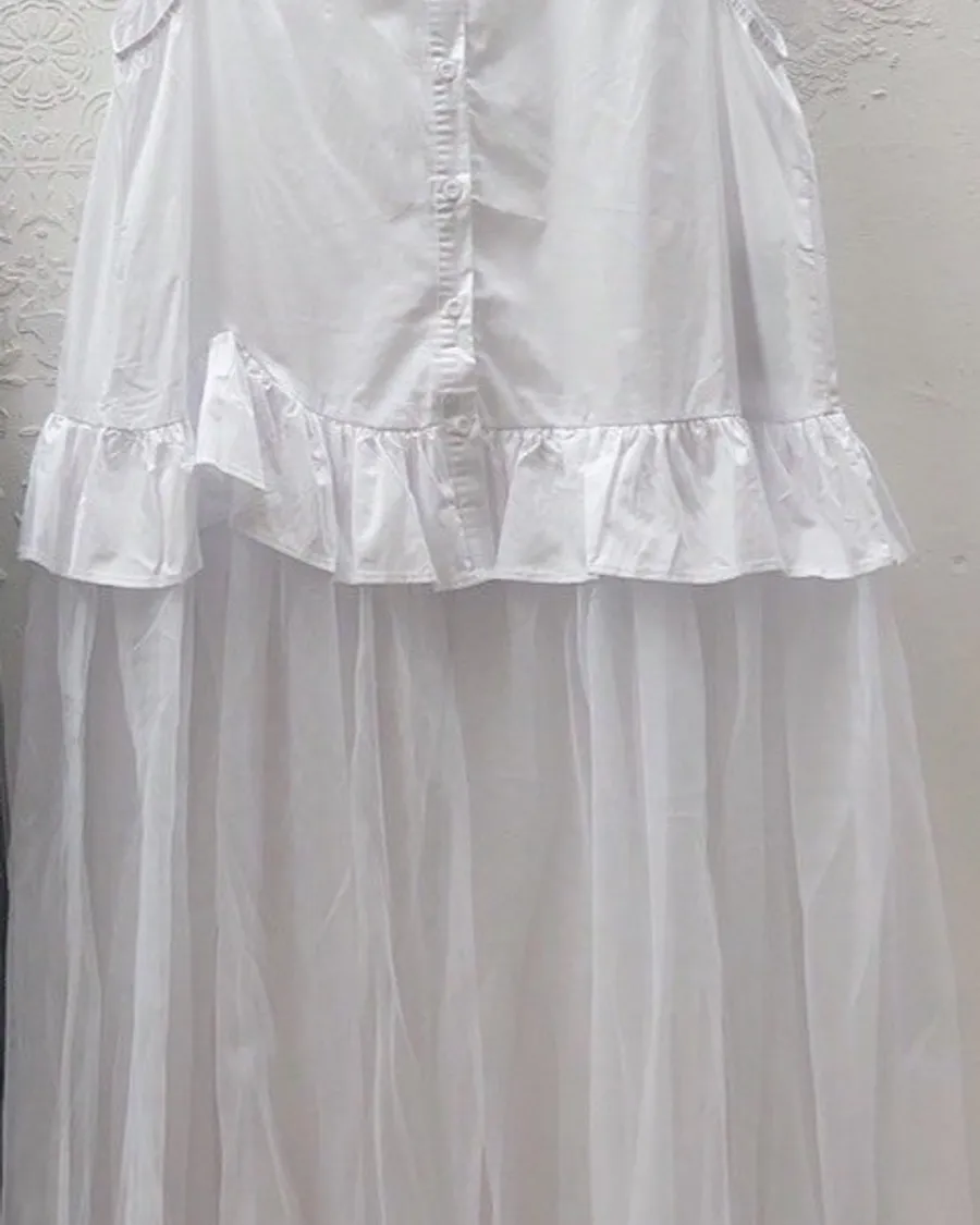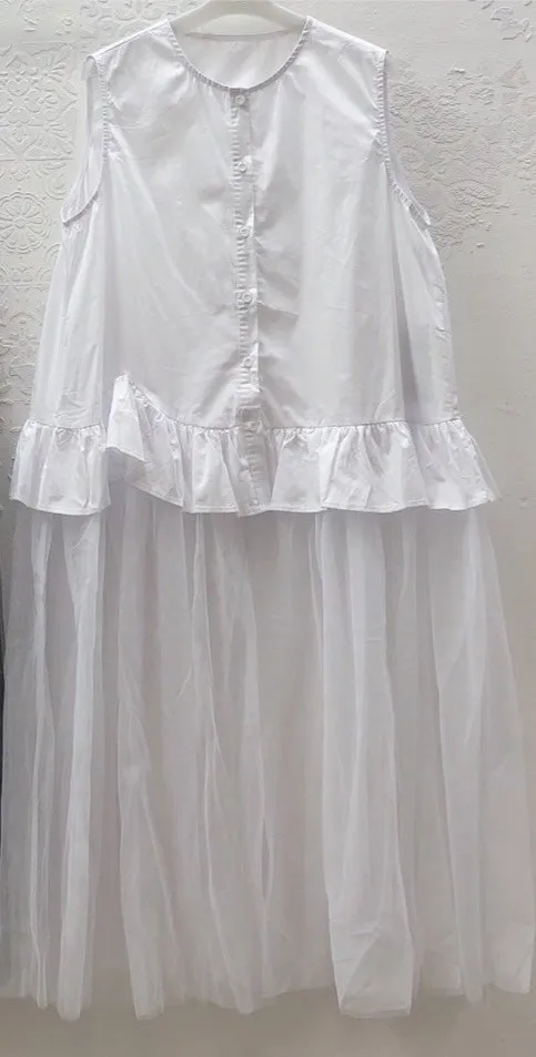 背心拼紗長洋