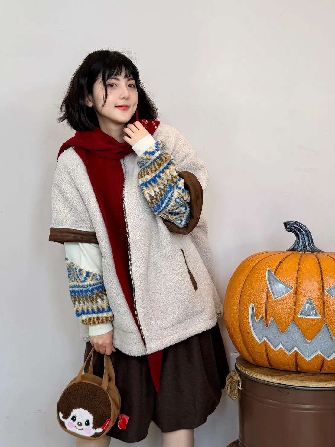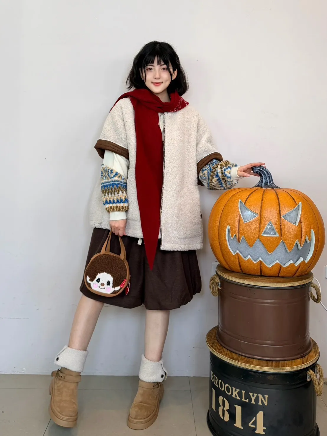 圖騰標籤帽圍巾