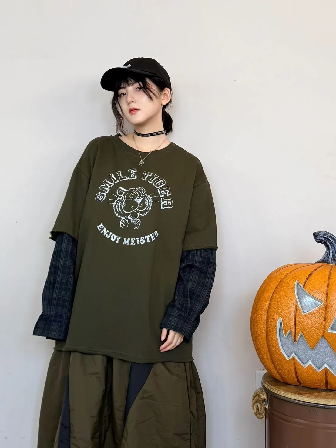 老虎假兩件襯衫上衣