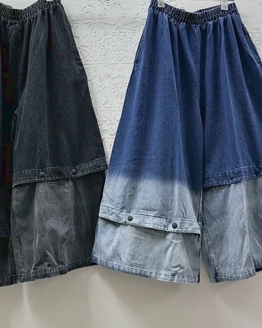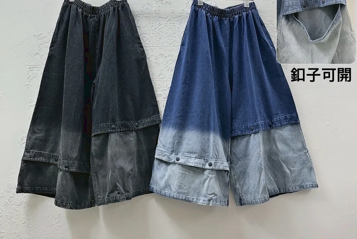 造型刷白寬褲