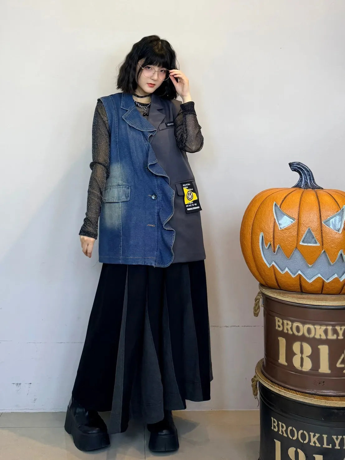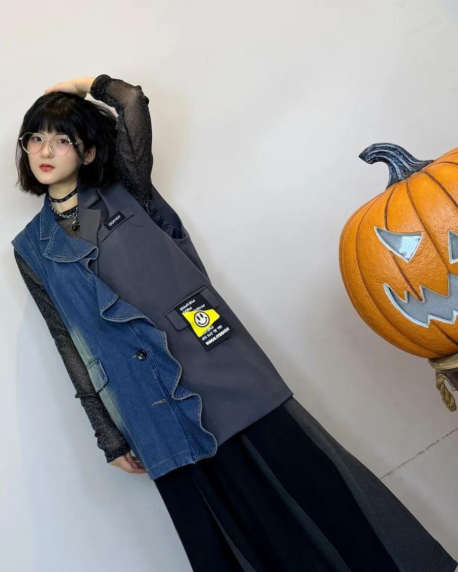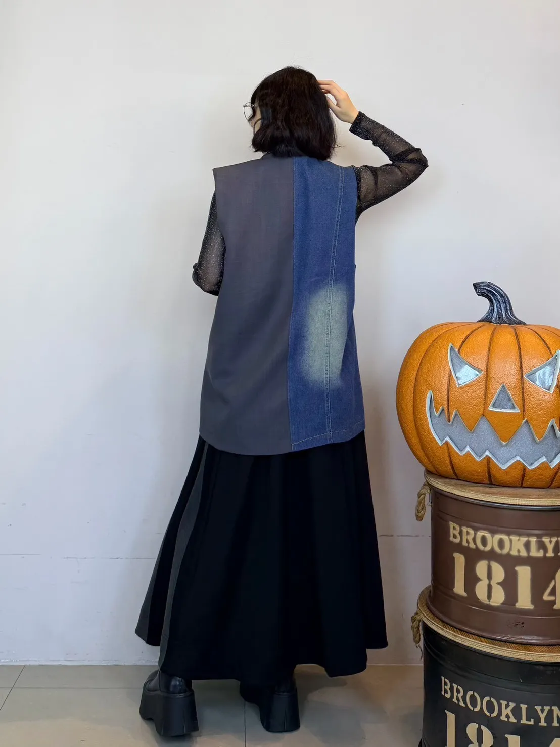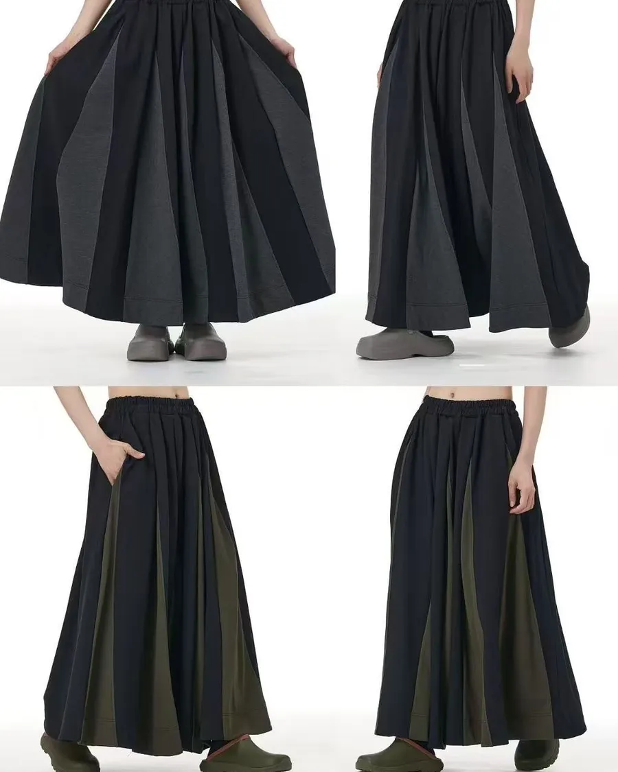 百折拼色長裙