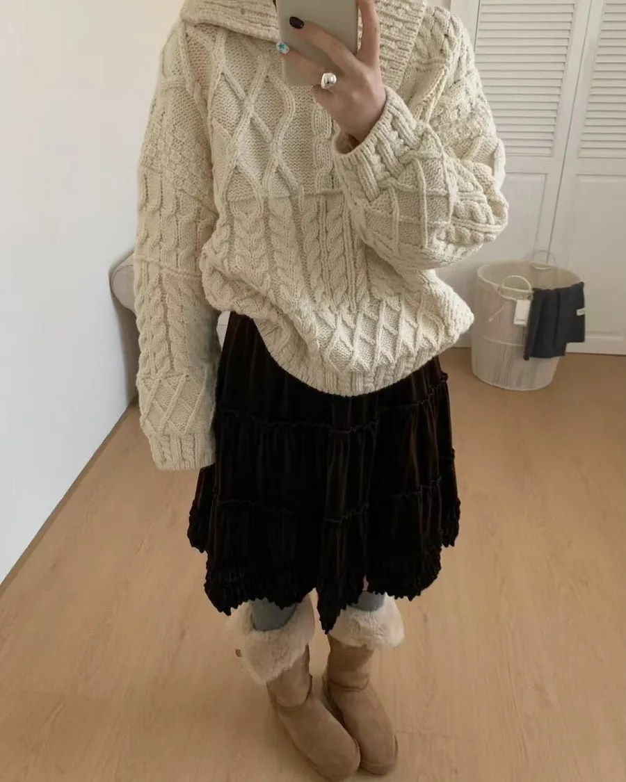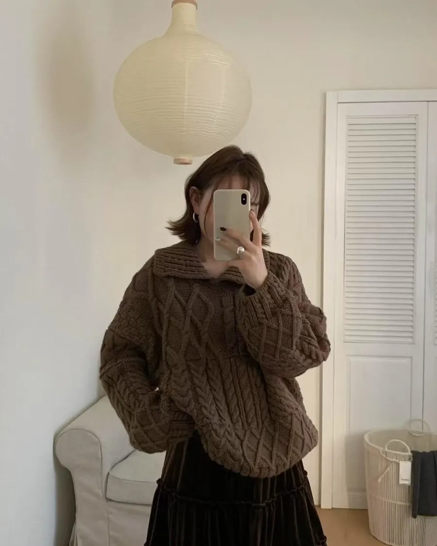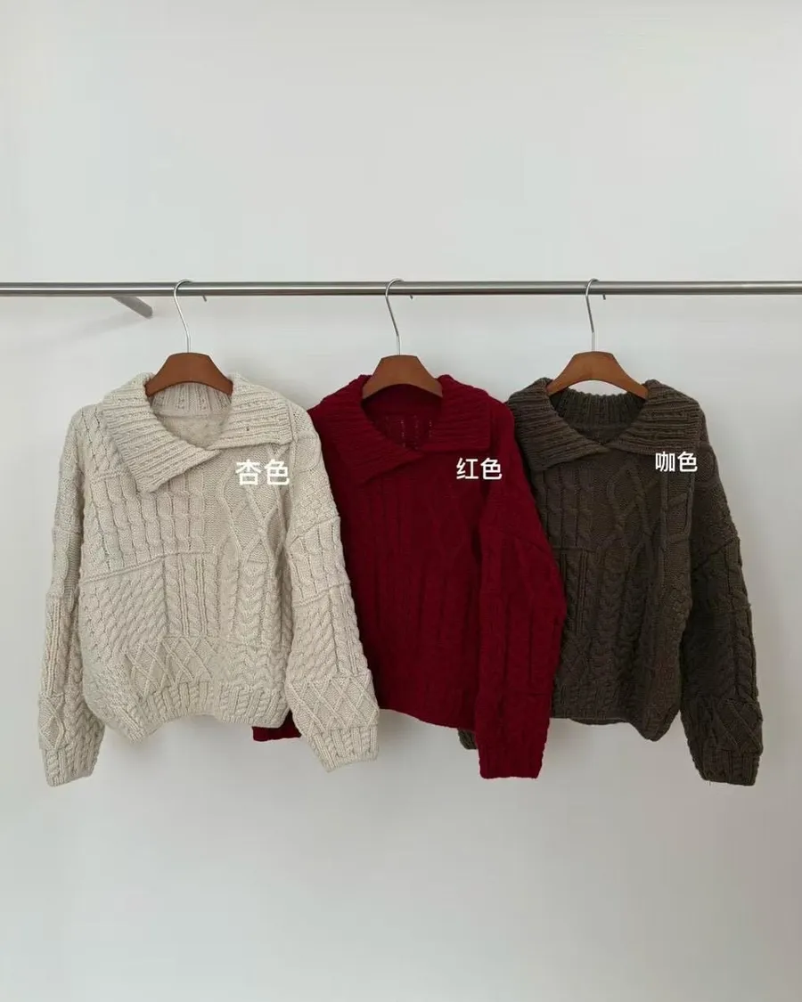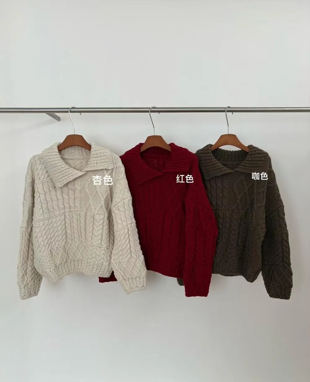 麻花v領針織上衣