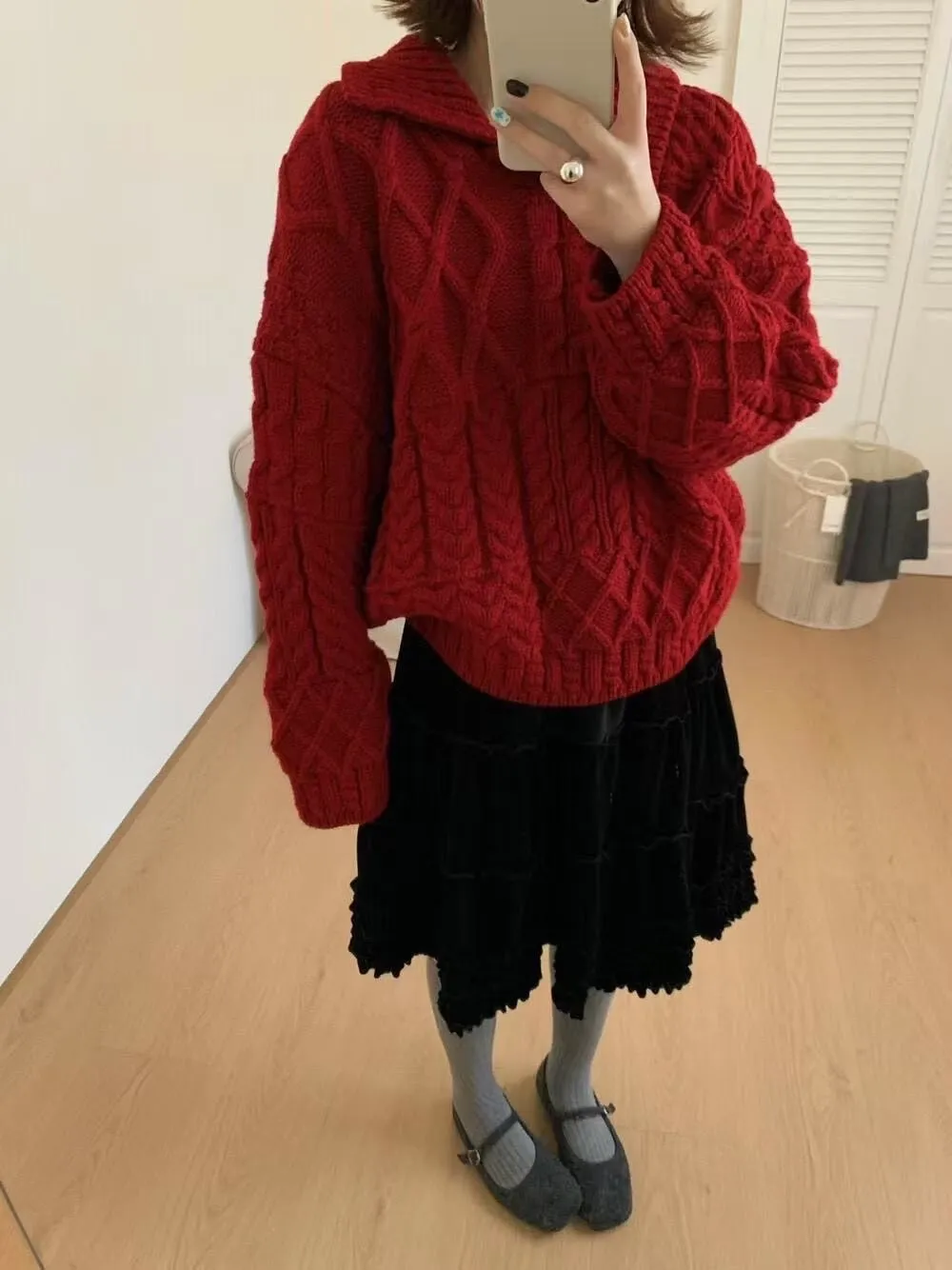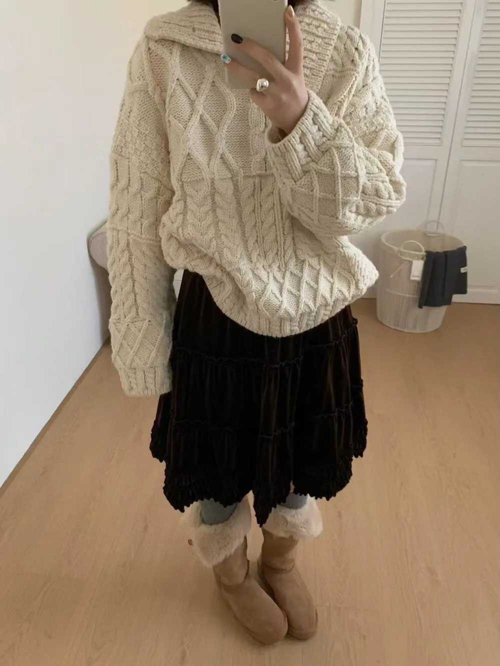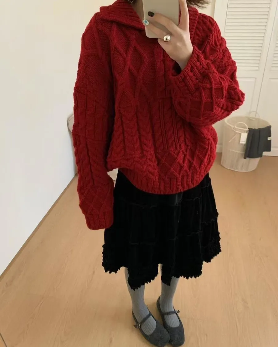麻花v領針織上衣