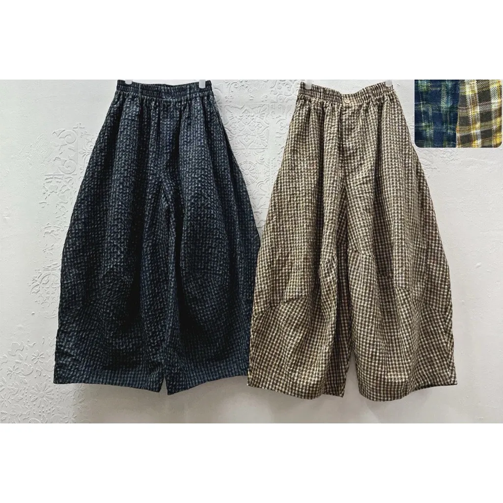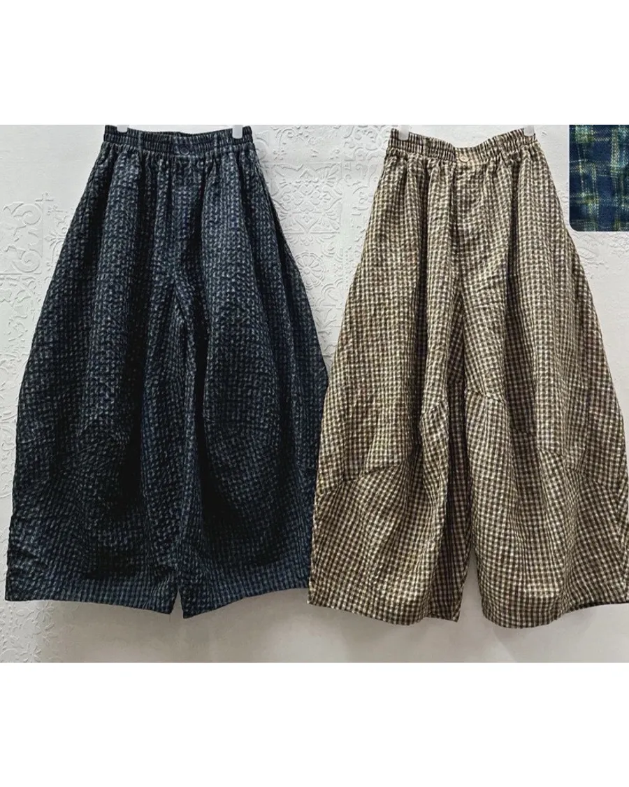 格紋立體寬褲