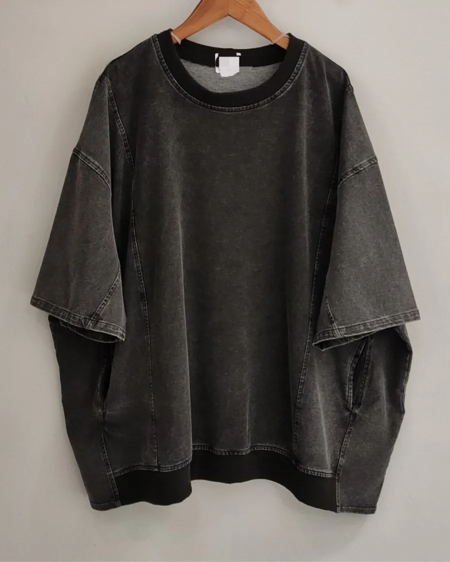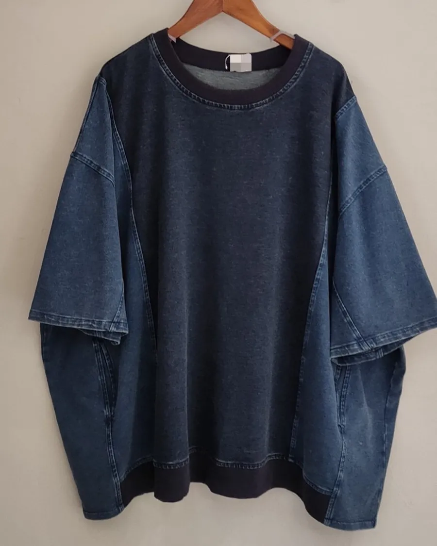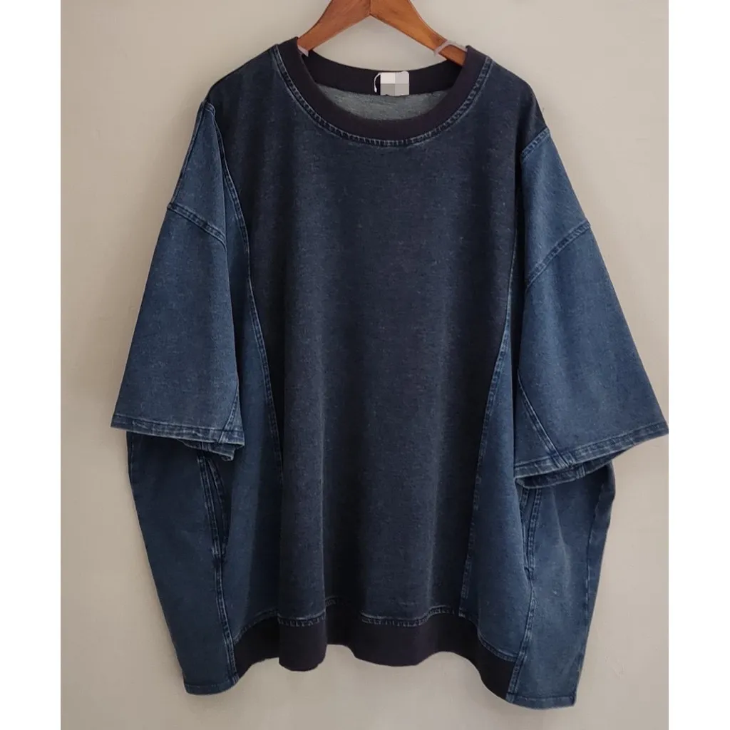 春夏日系牛仔拼布上衣
