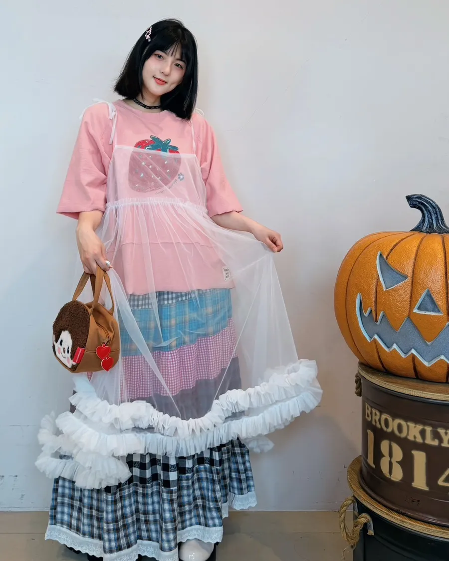 糖果色吊帶設計款連身紗裙