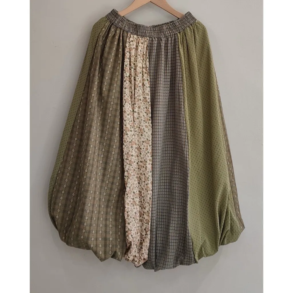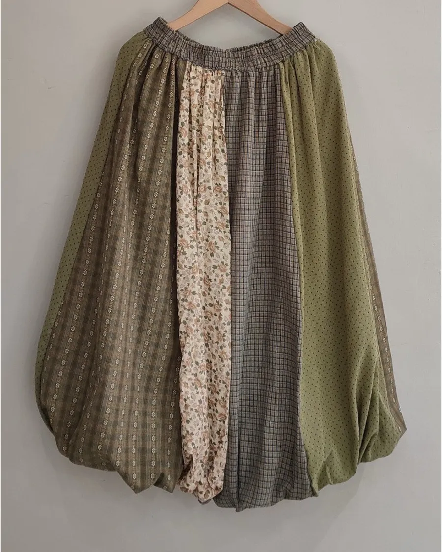 春季森林系直紋花拼布苞裙