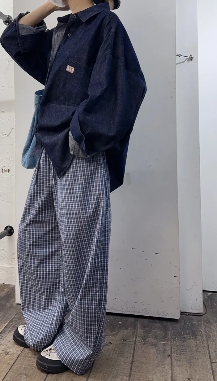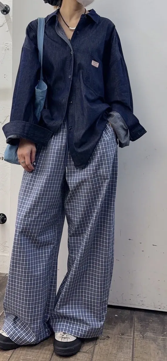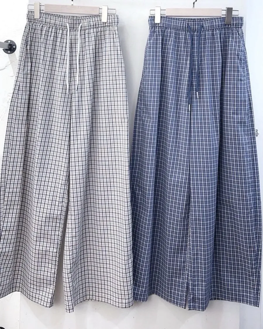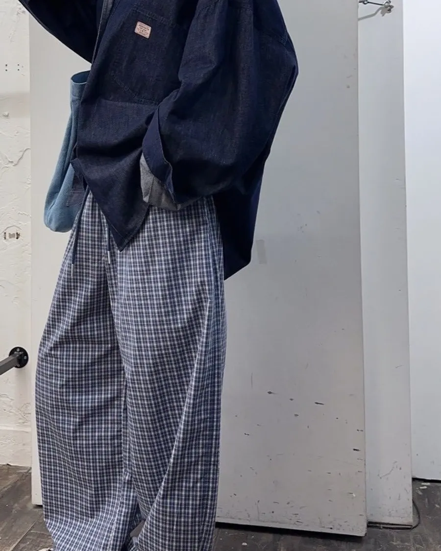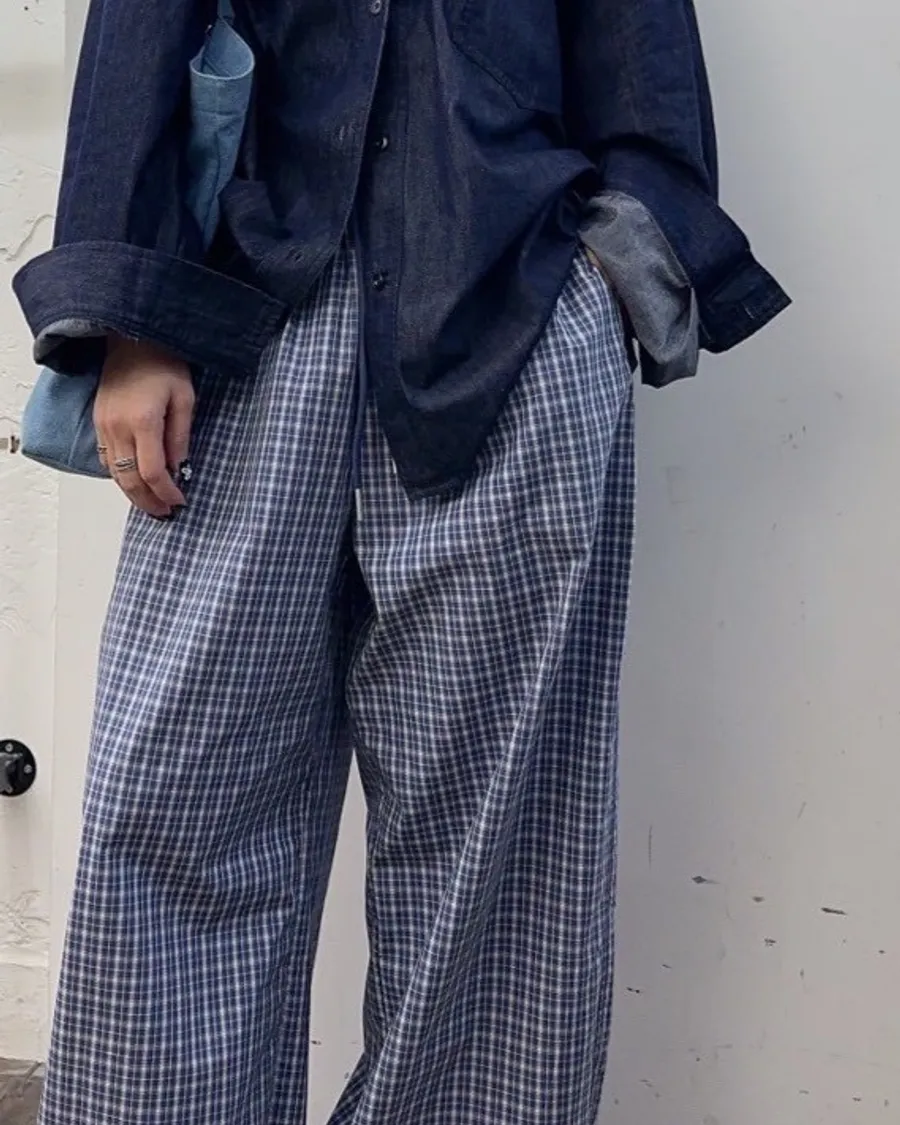 格紋直筒褲