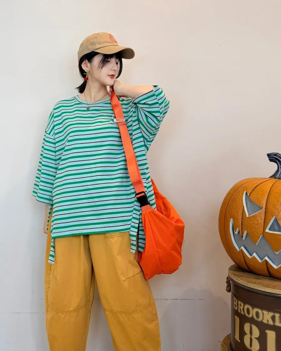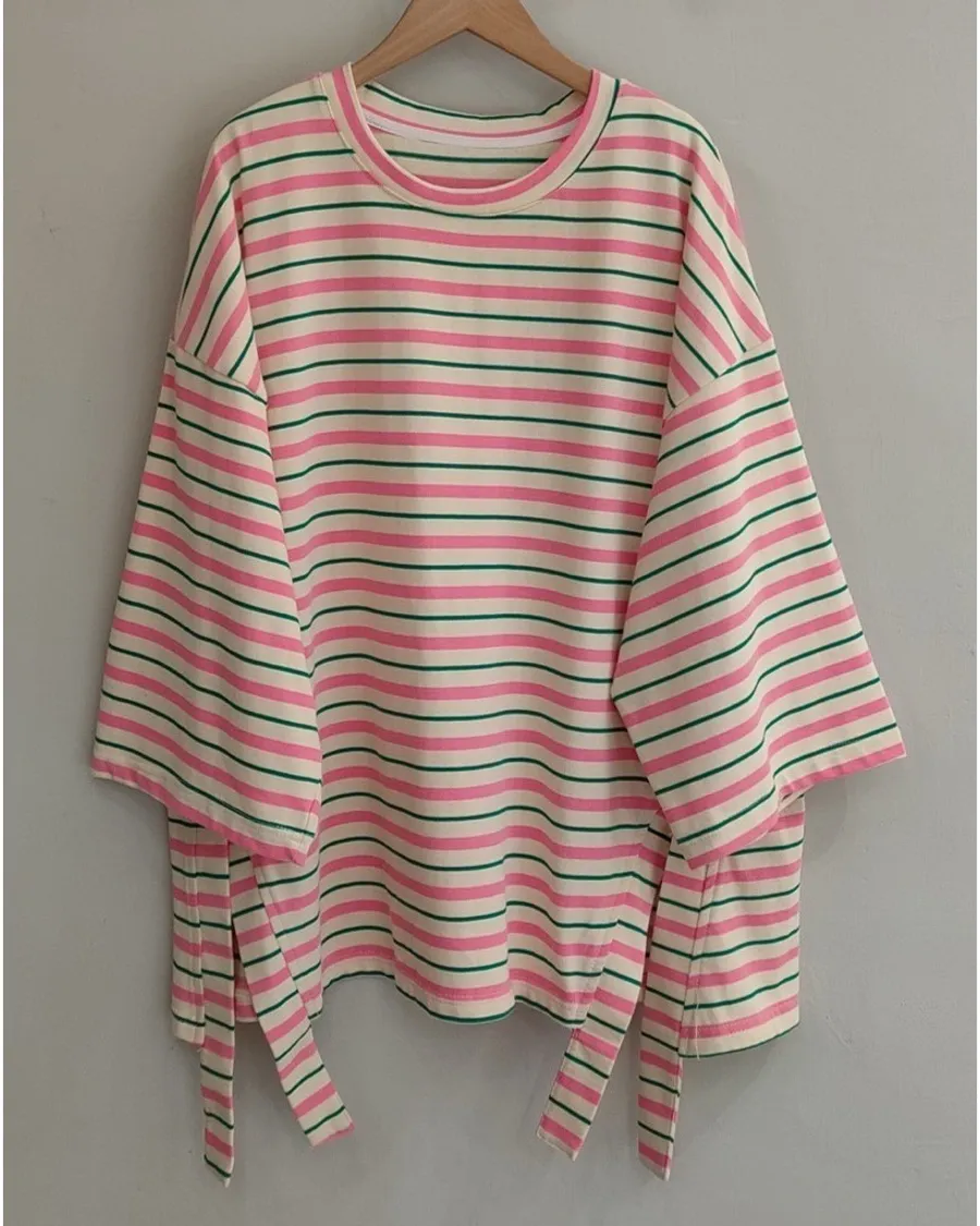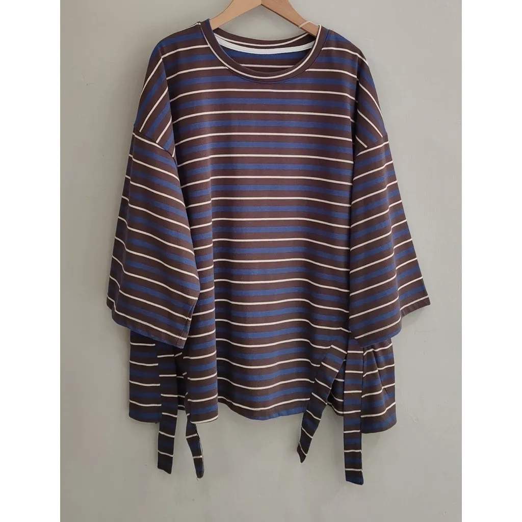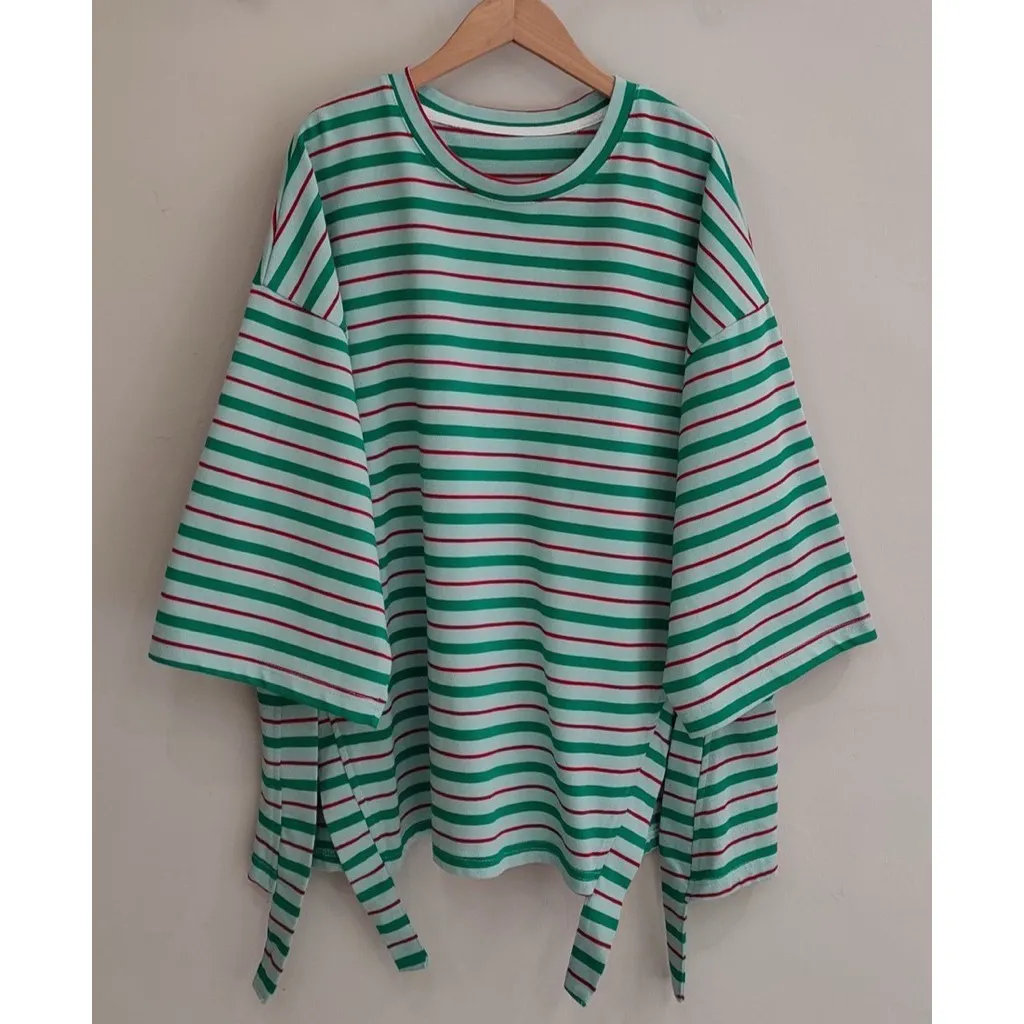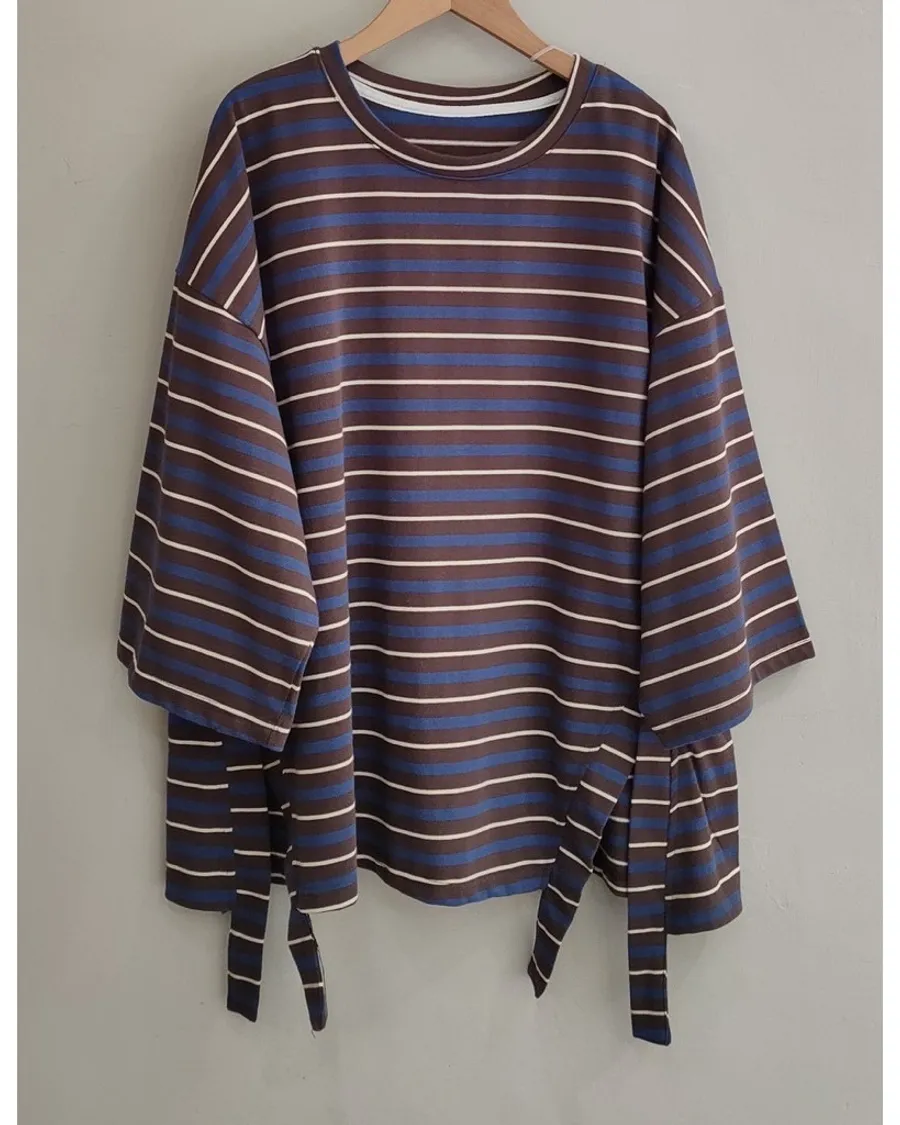 條紋側開叉上衣