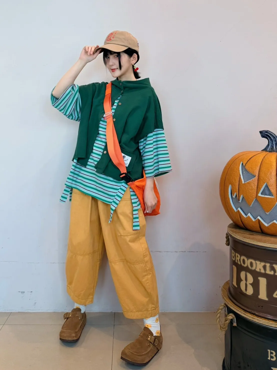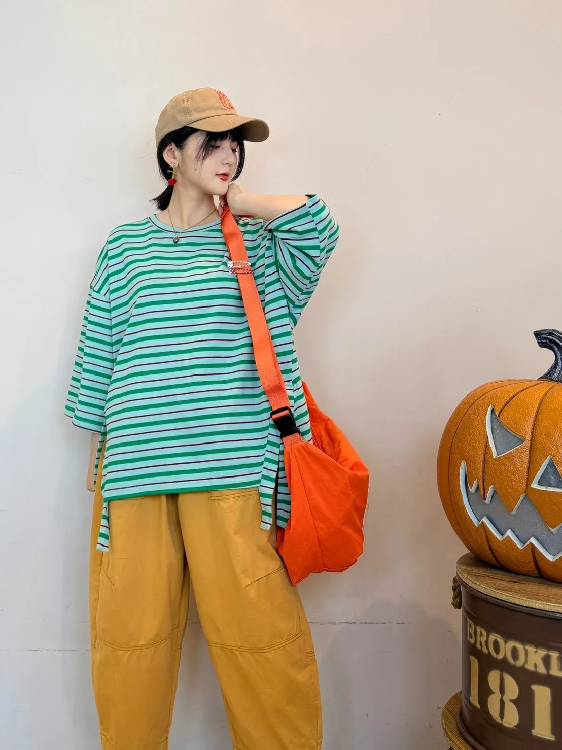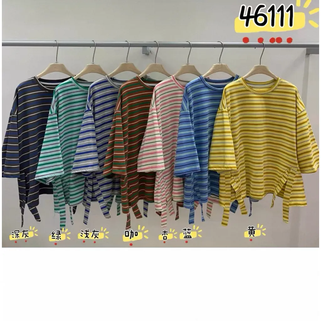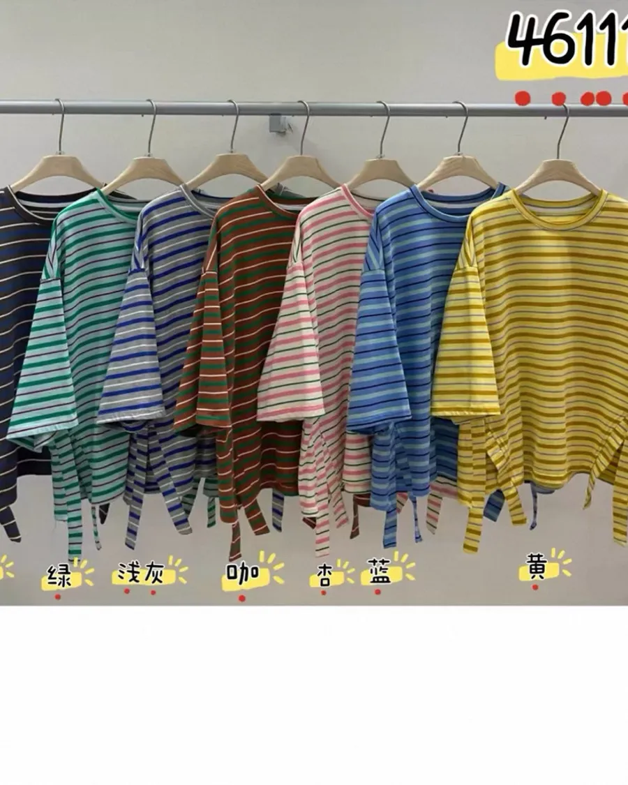 條紋側開叉上衣