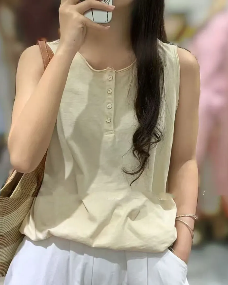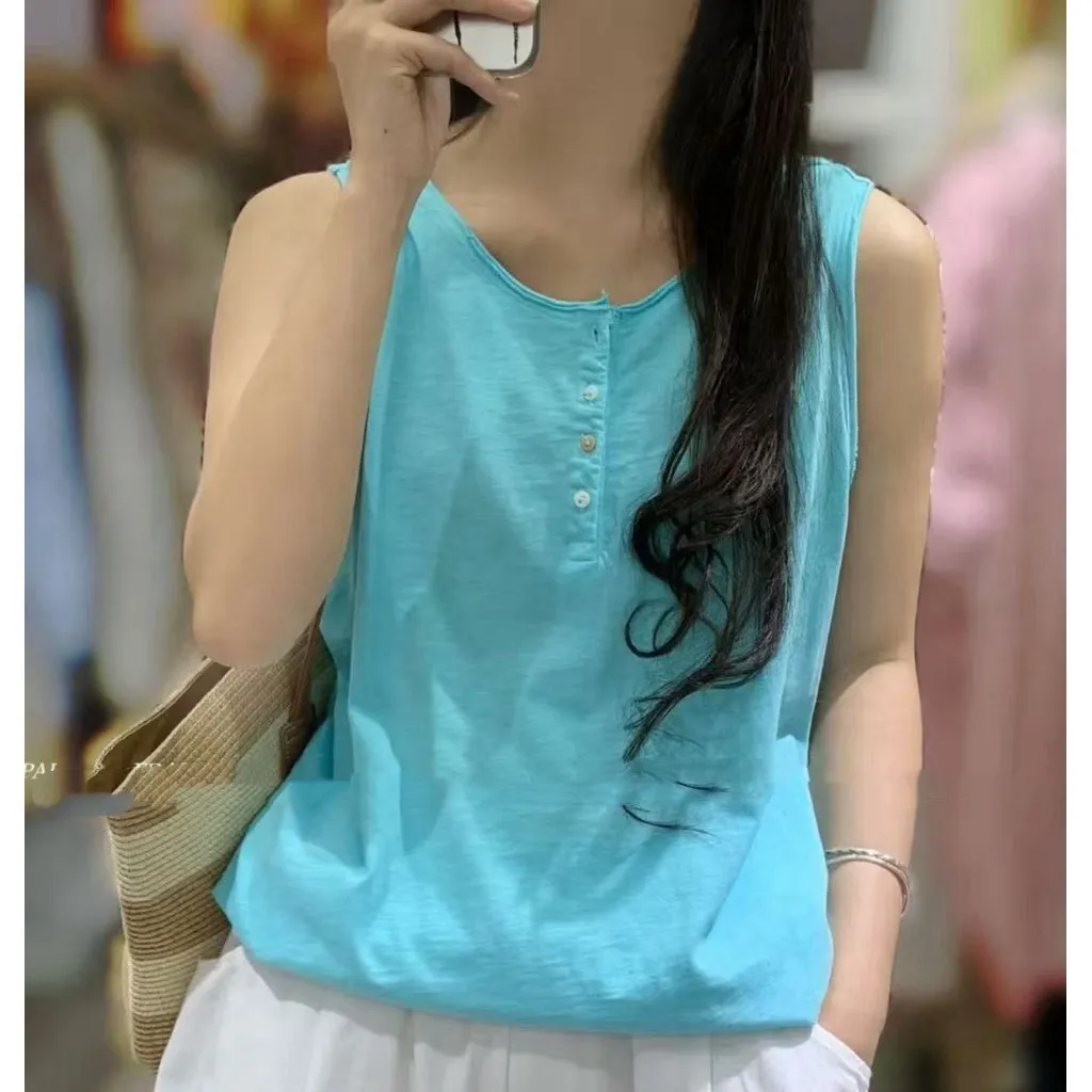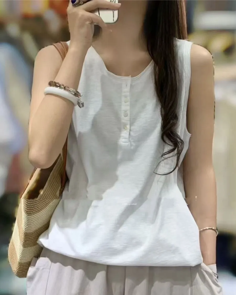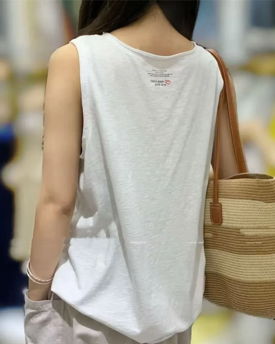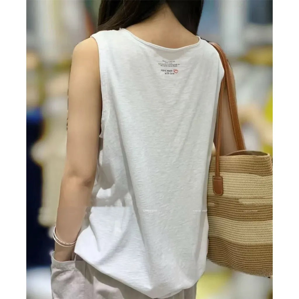 竹節棉後印花無袖背心