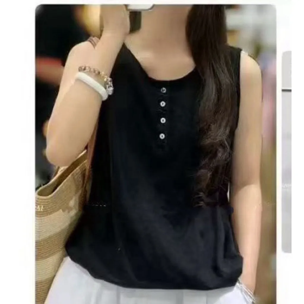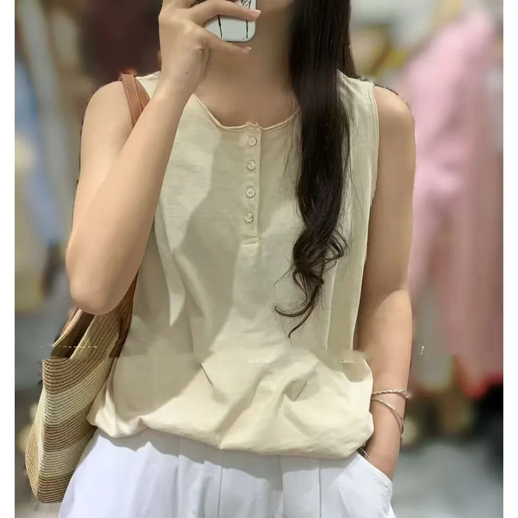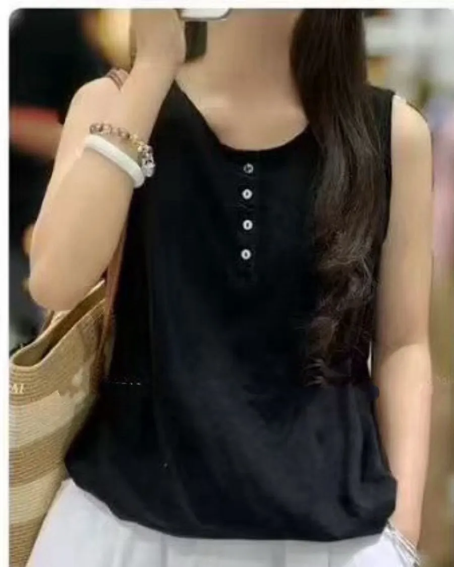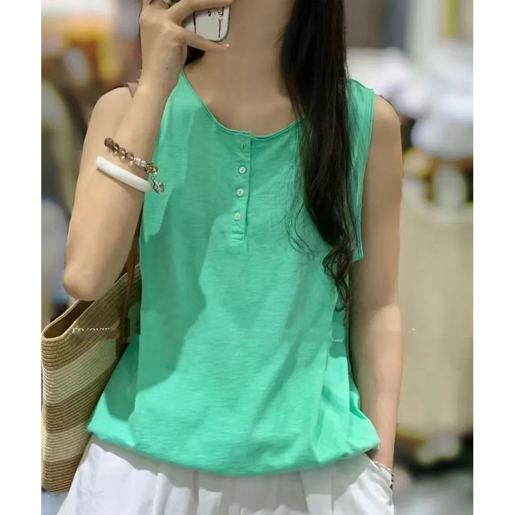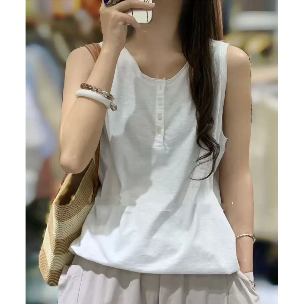 竹節棉後印花無袖背心