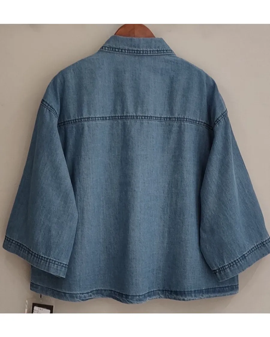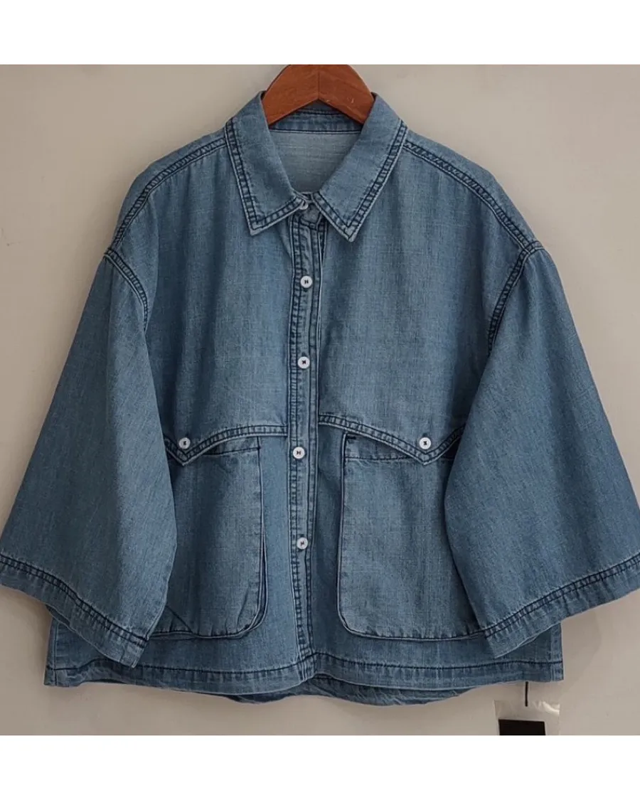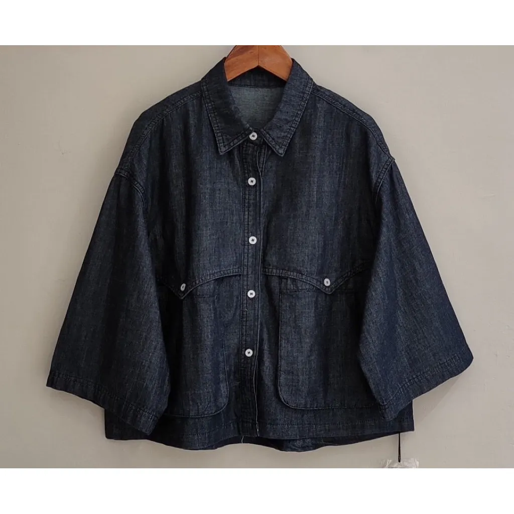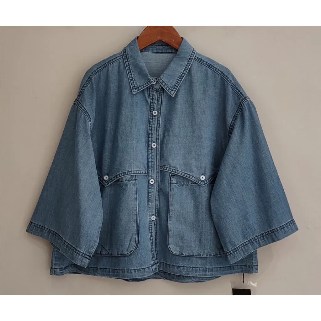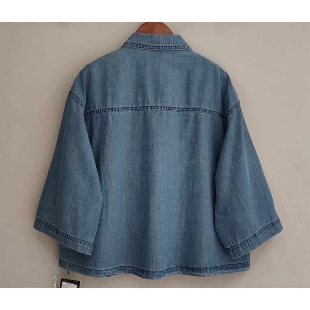日系扣子口袋牛仔上衣