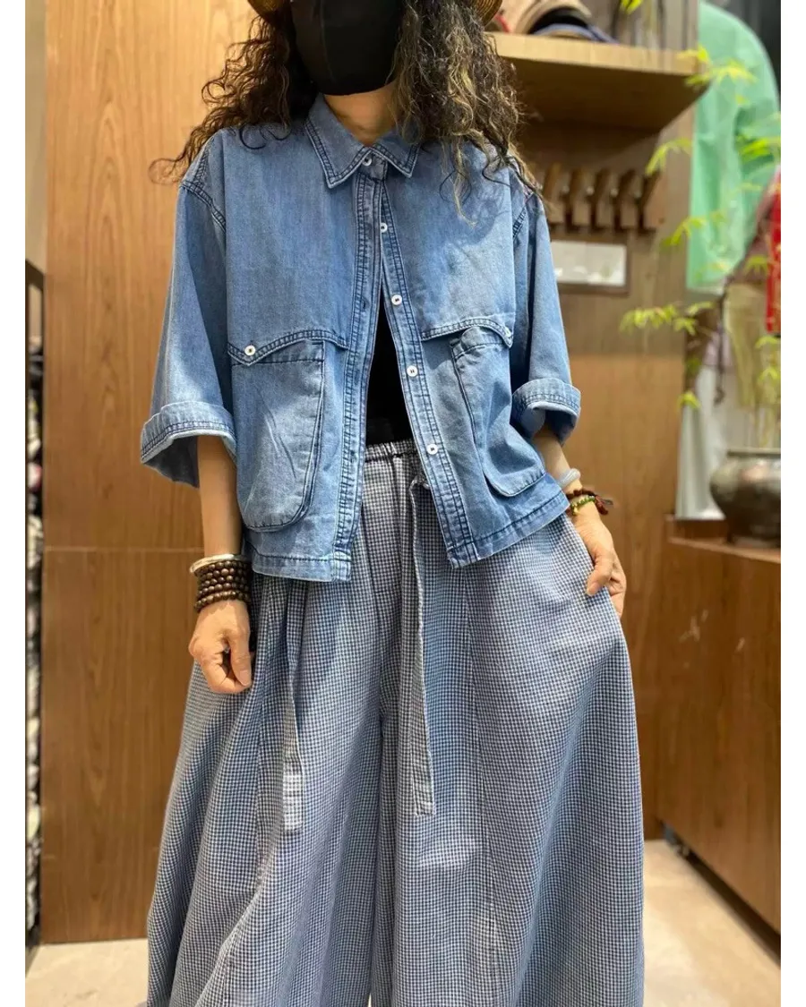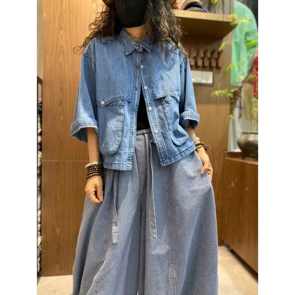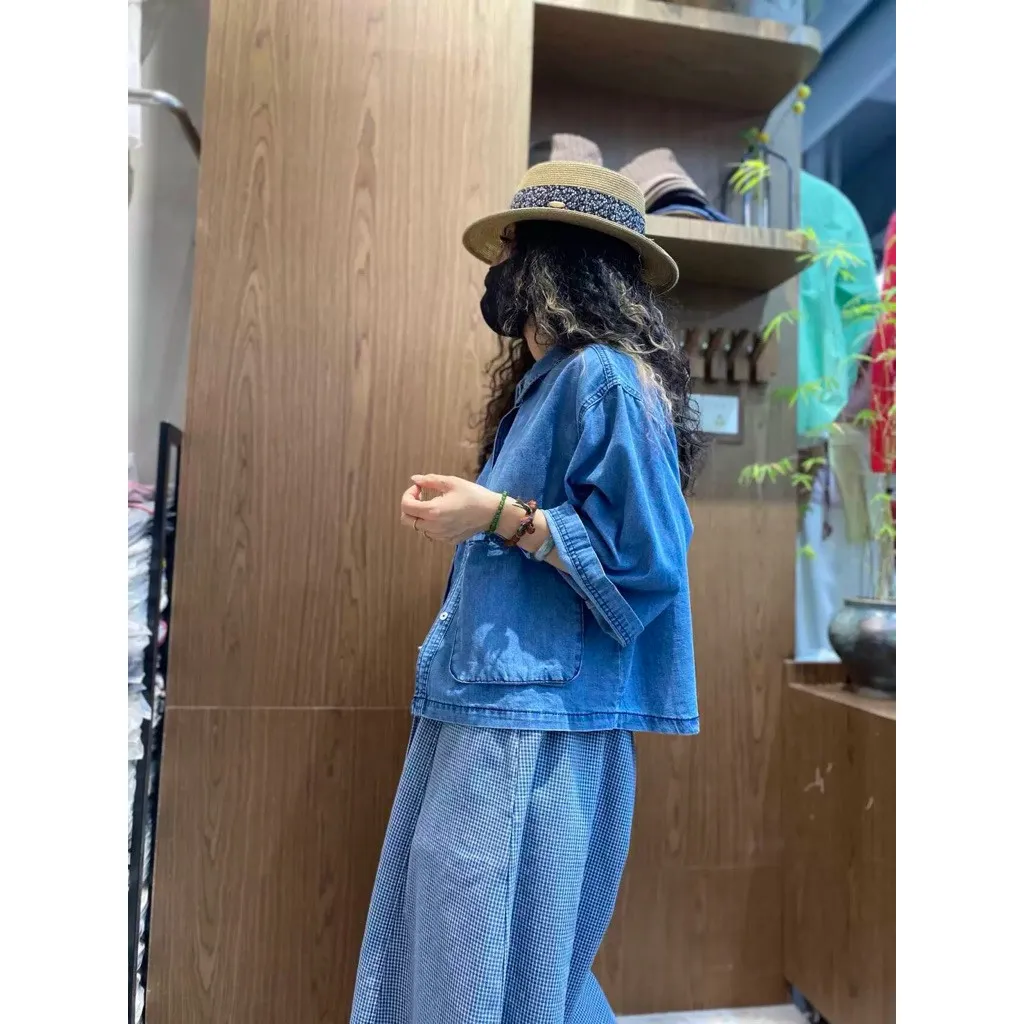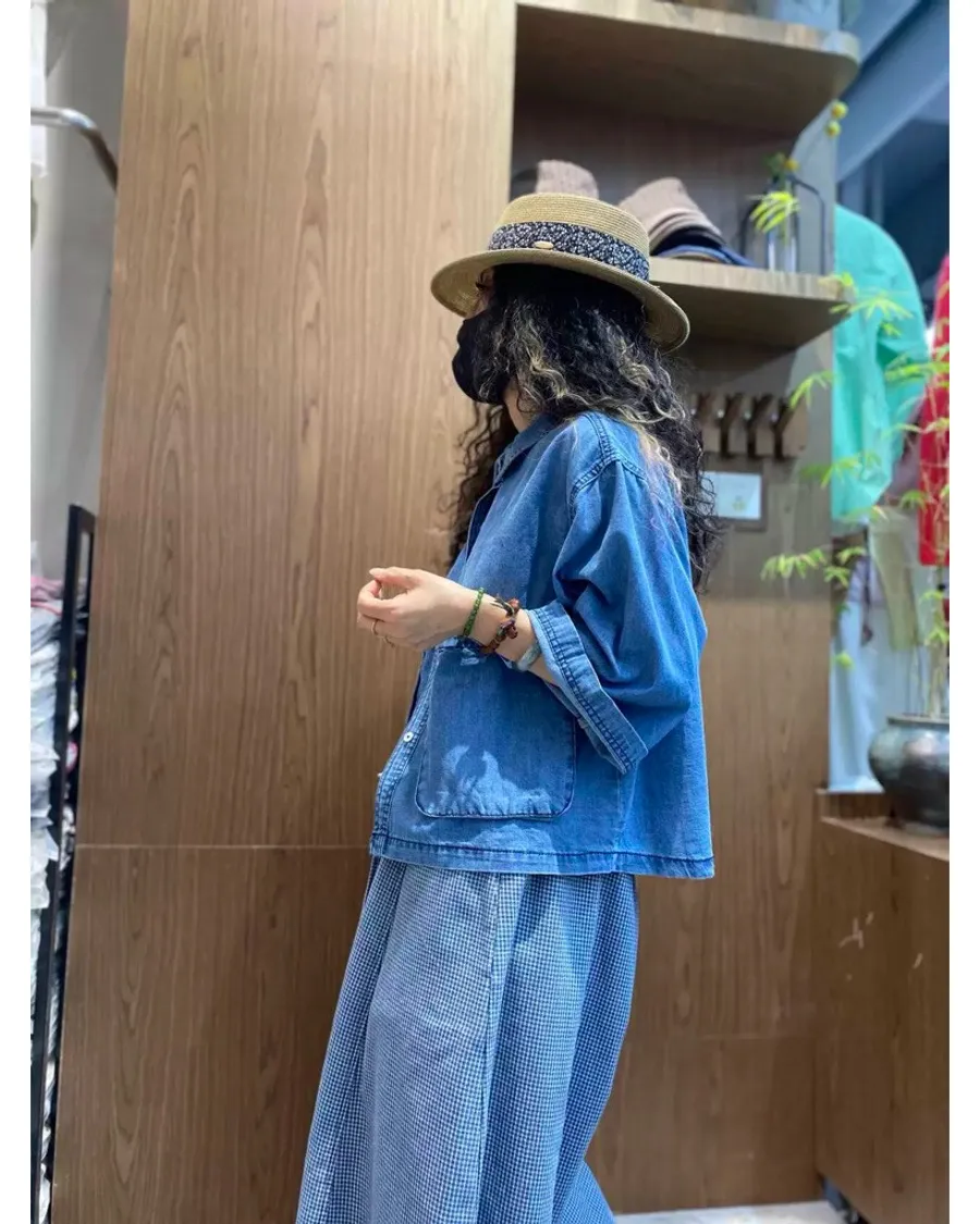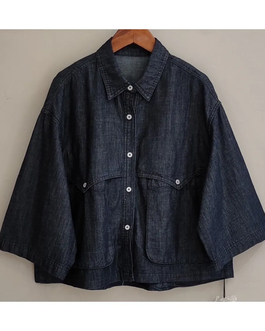 日系扣子口袋牛仔上衣