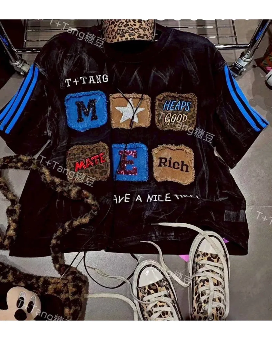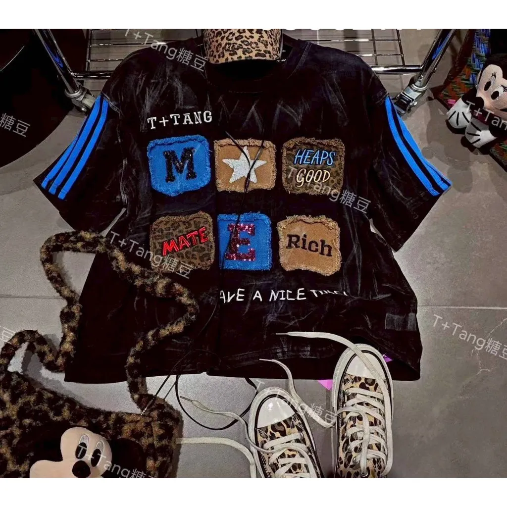 春夏豹紋貼布水洗棉上衣