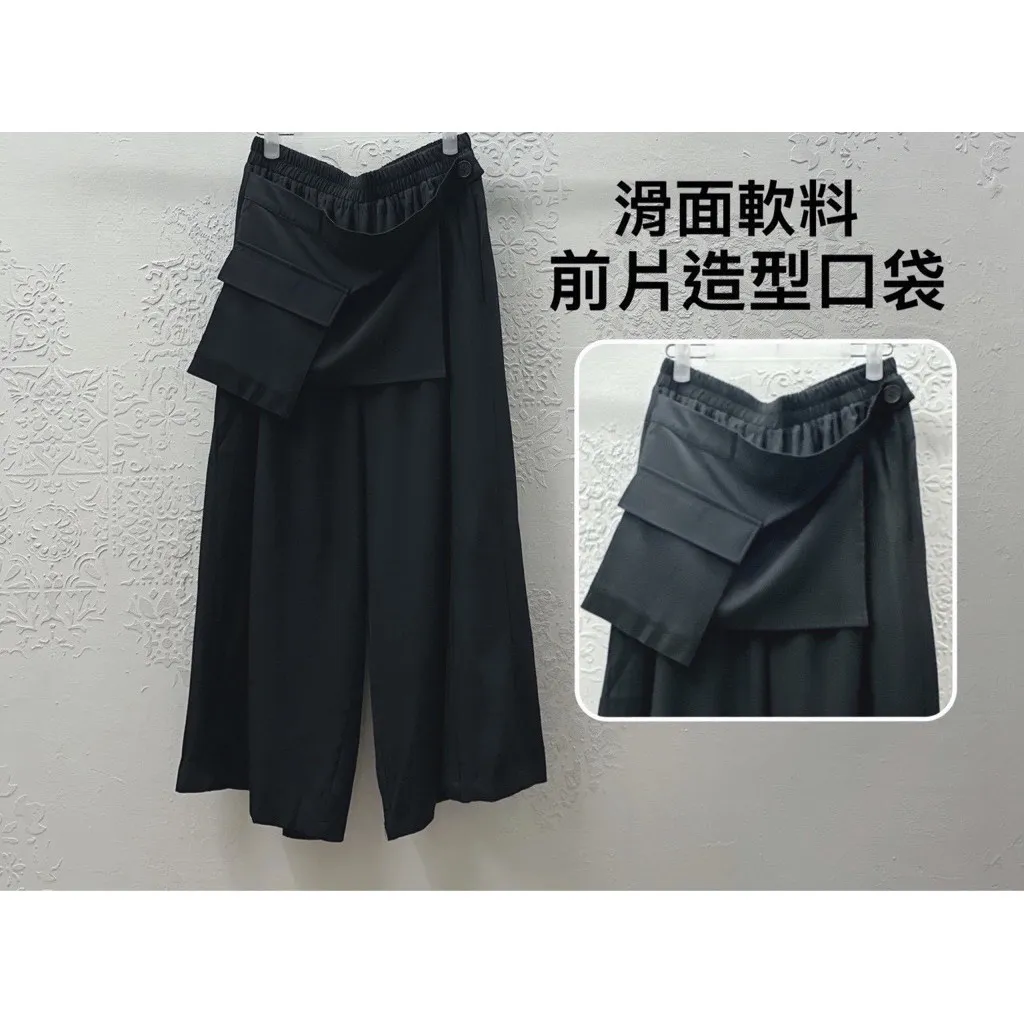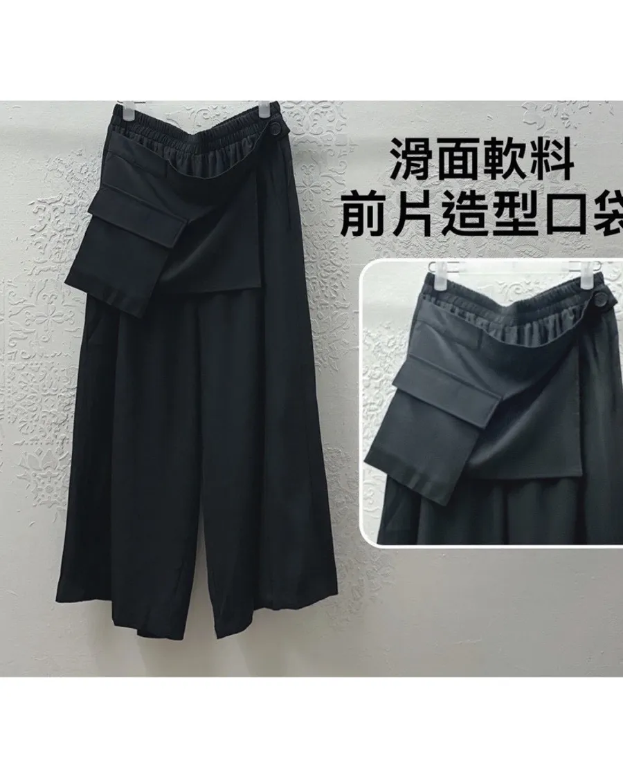 設計款造型口袋滑面寬褲