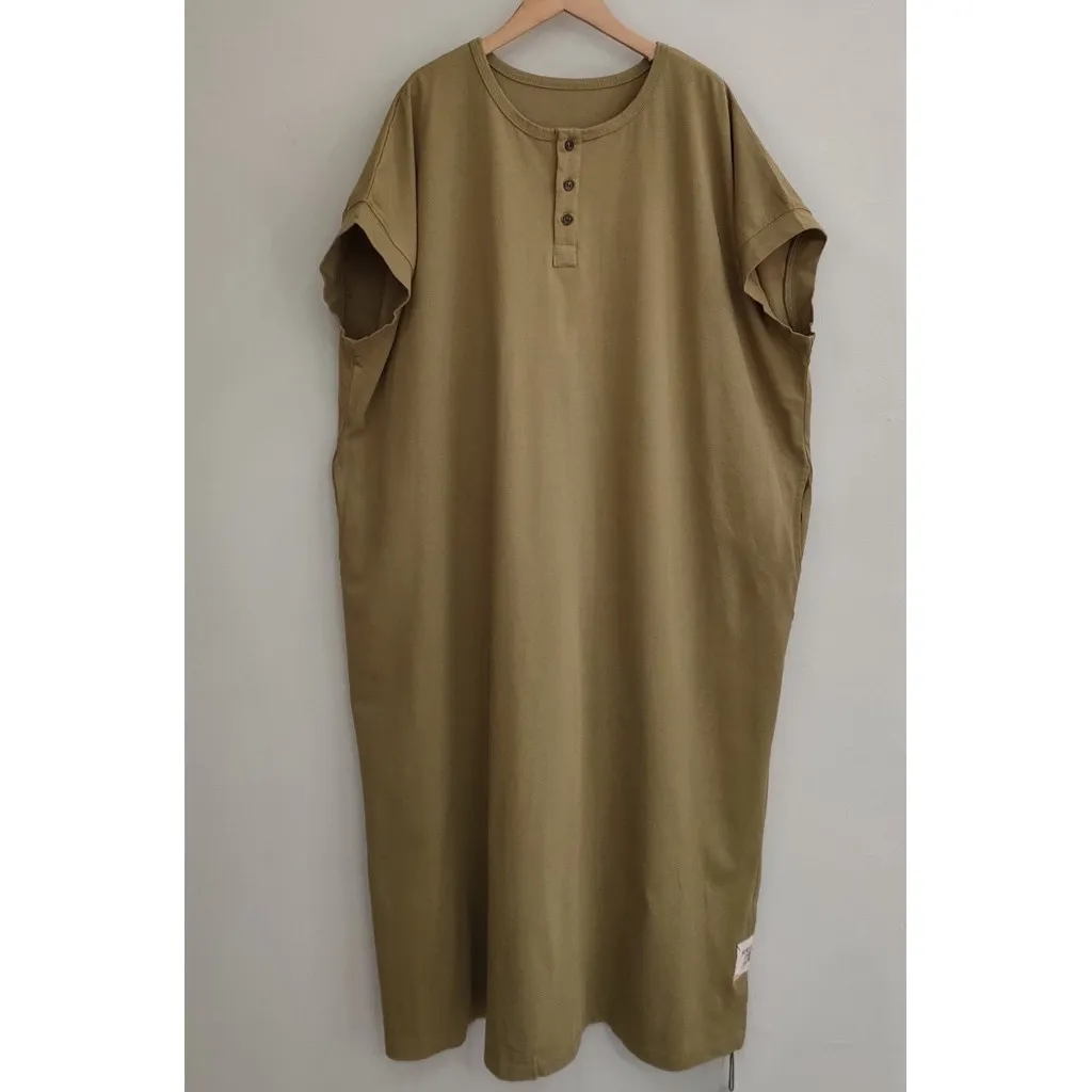 韓版貼標雙扣棉質長洋