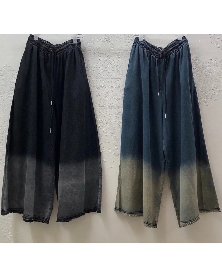 古著薄款漸層牛仔寬褲