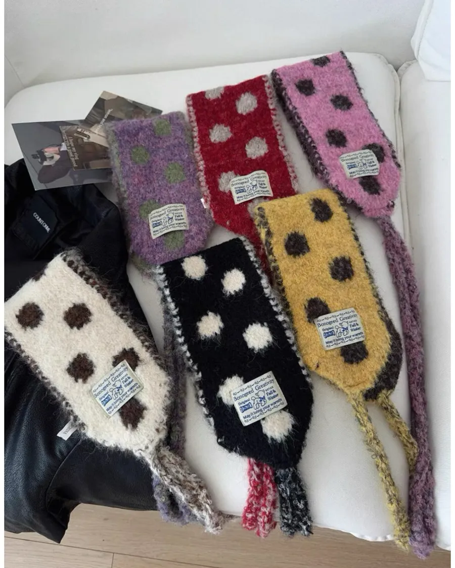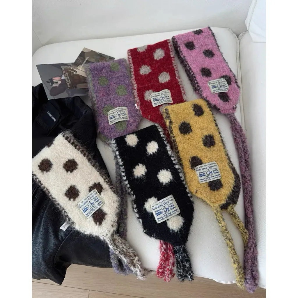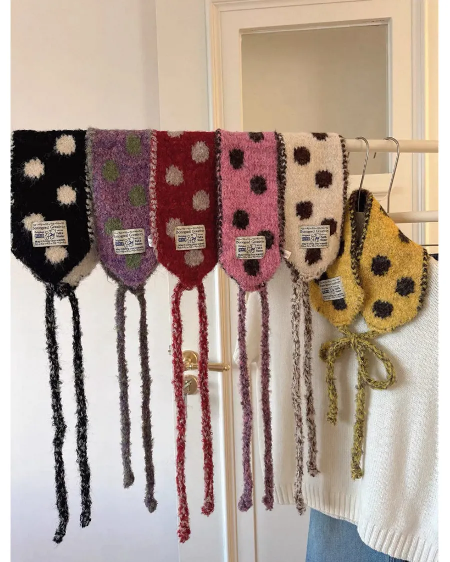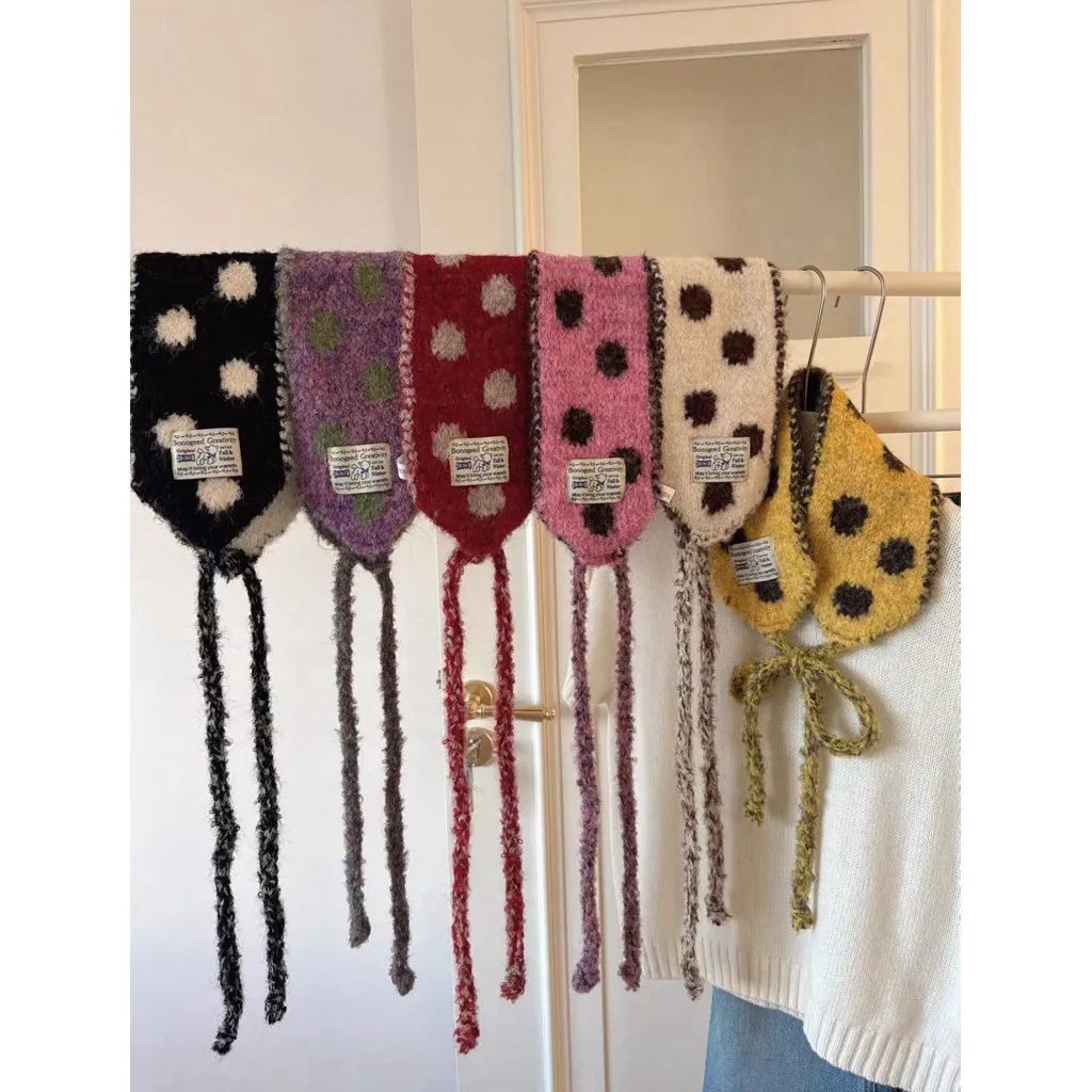 仿羊毛針織撞色波點百搭披肩圍脖