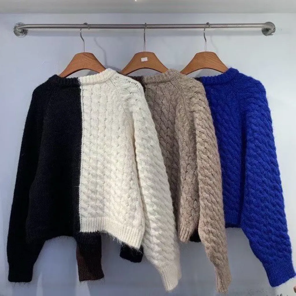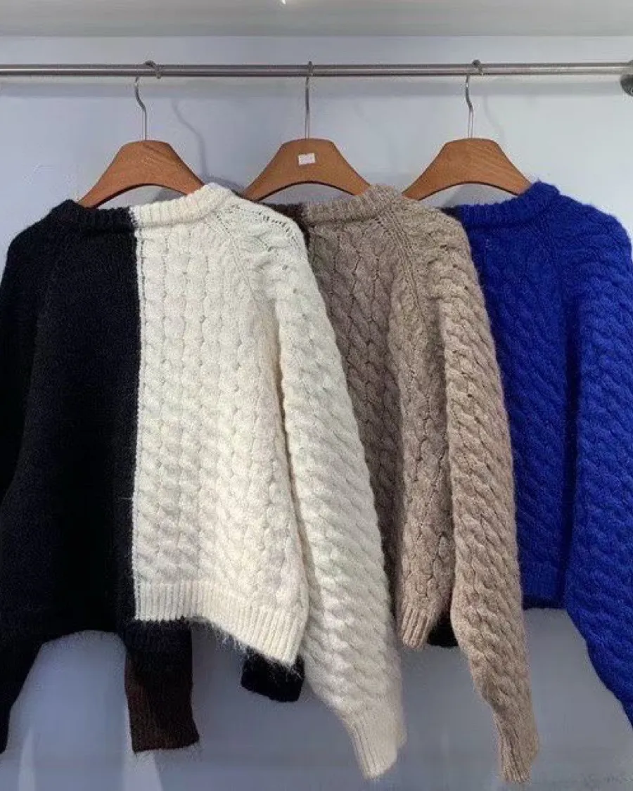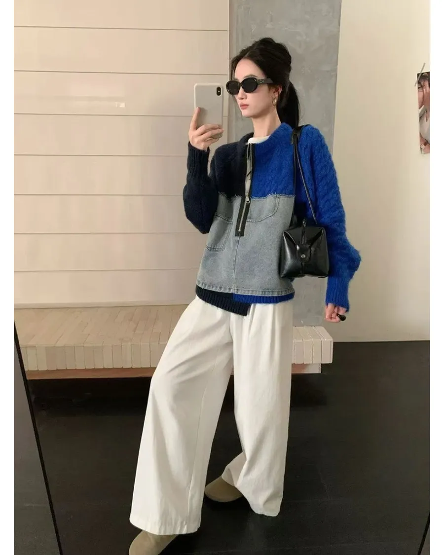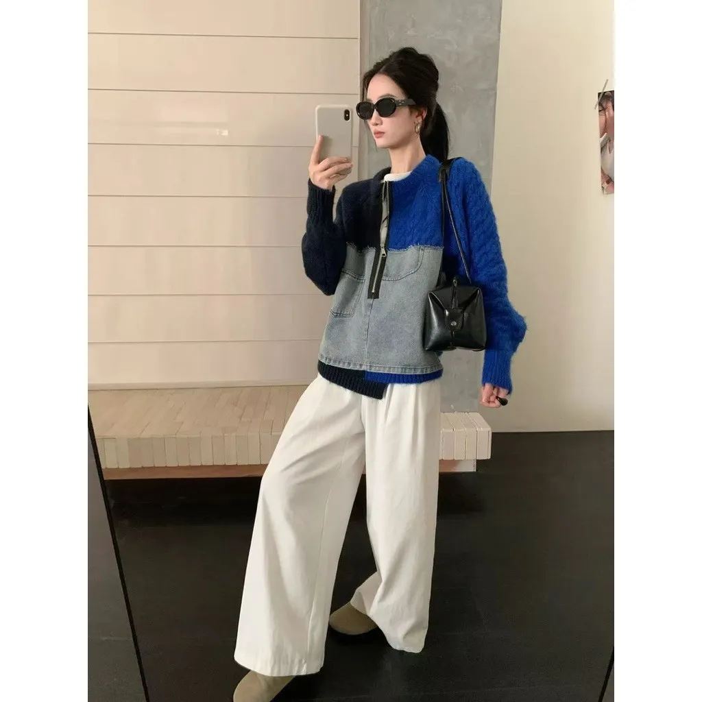 撞色針織牛仔拼接上衣