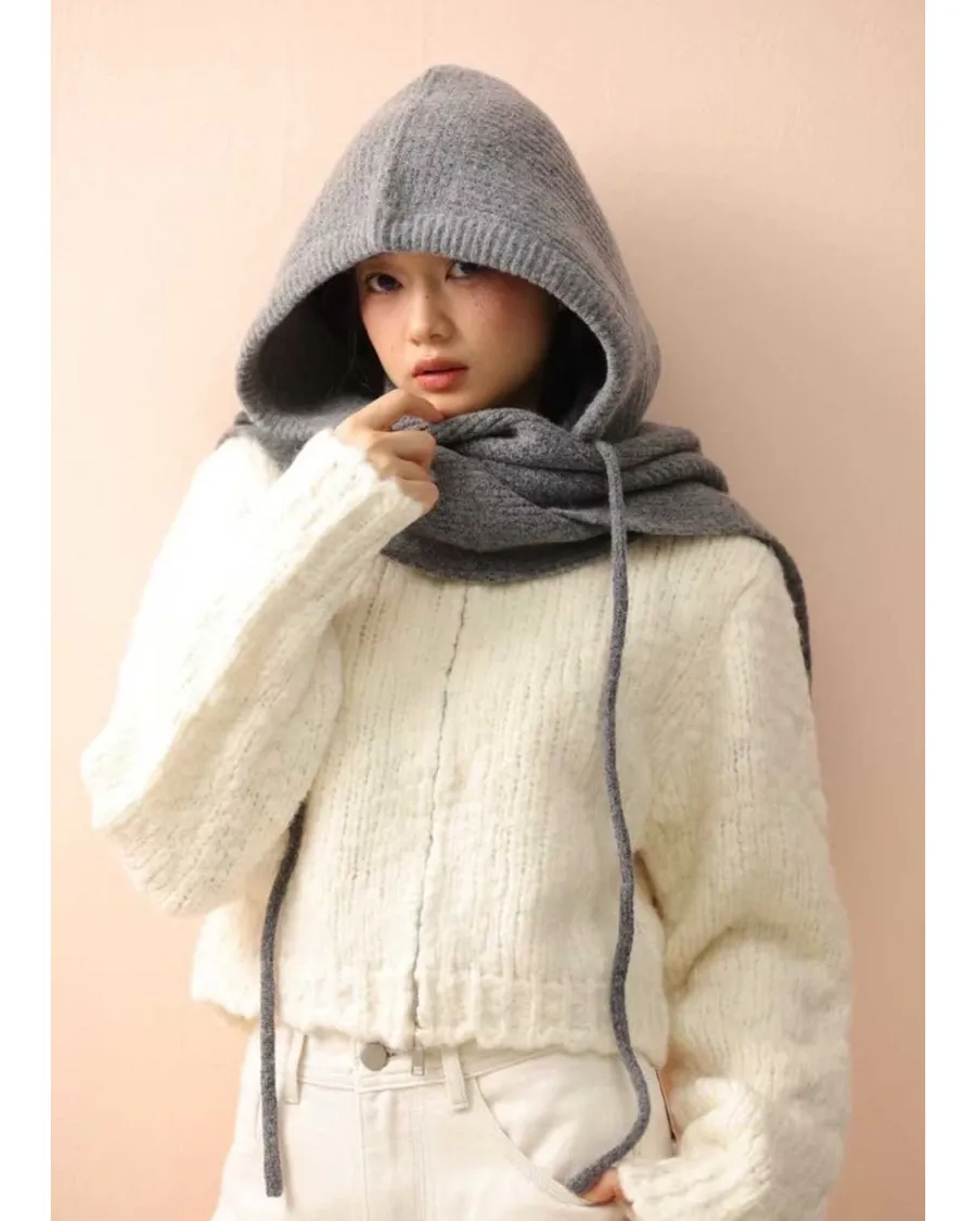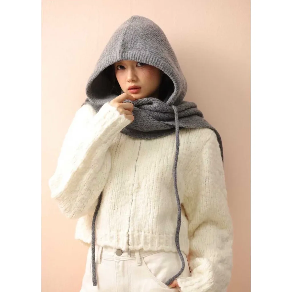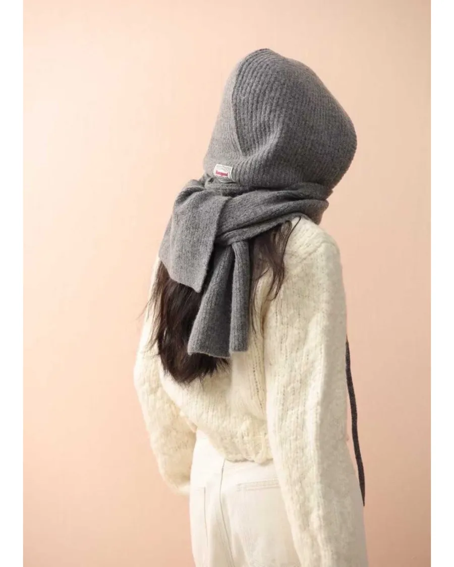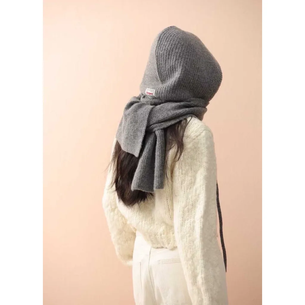 韓版造型貼標針織帽圍巾
