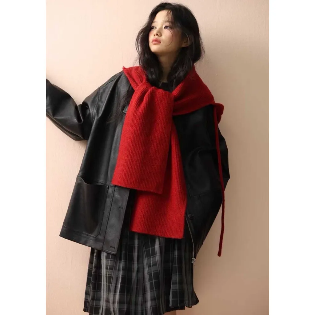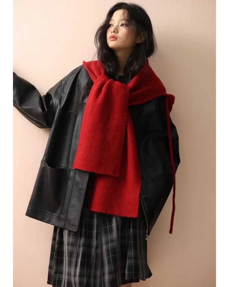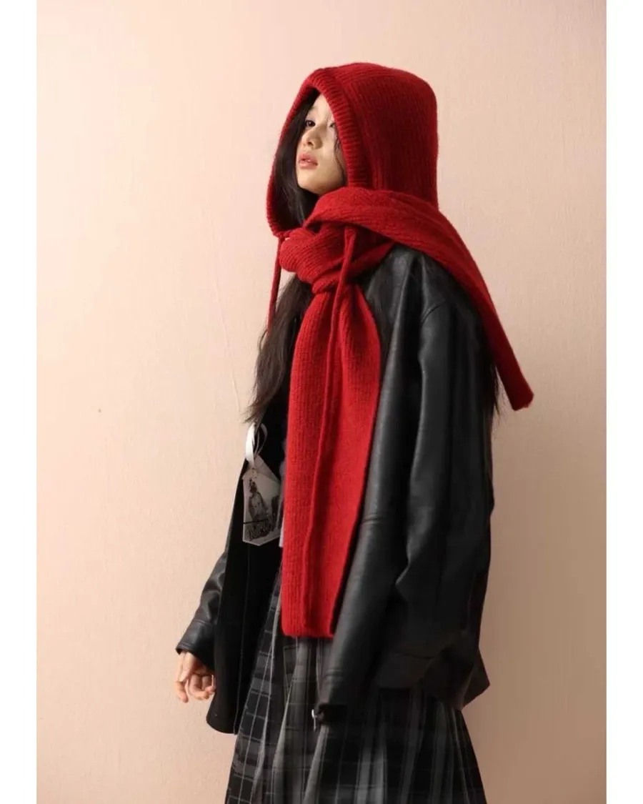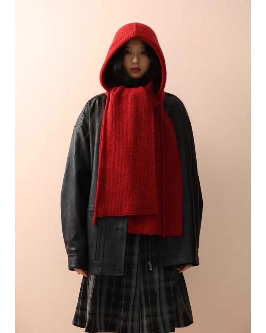 韓版造型貼標針織帽圍巾