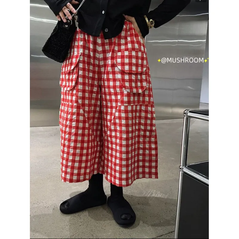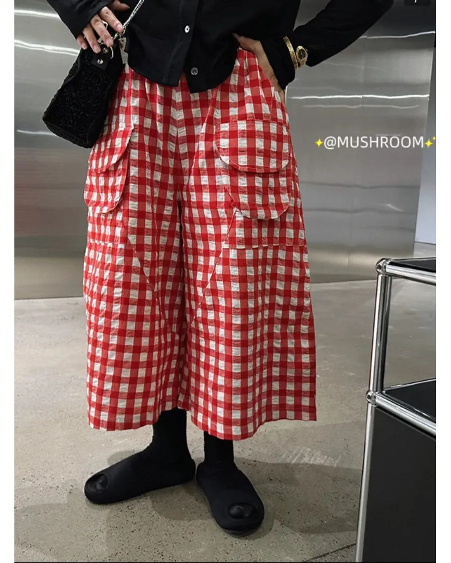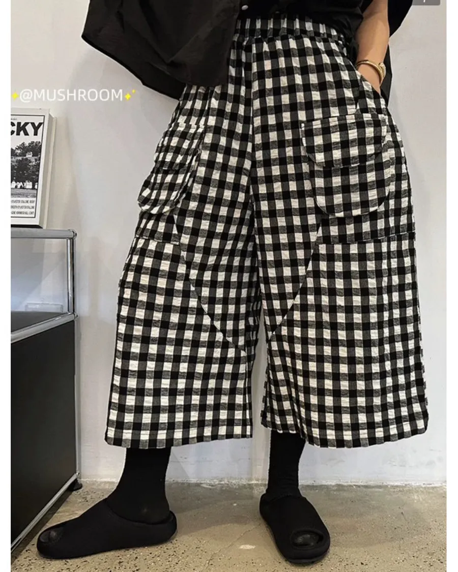 韓版格紋7分褲