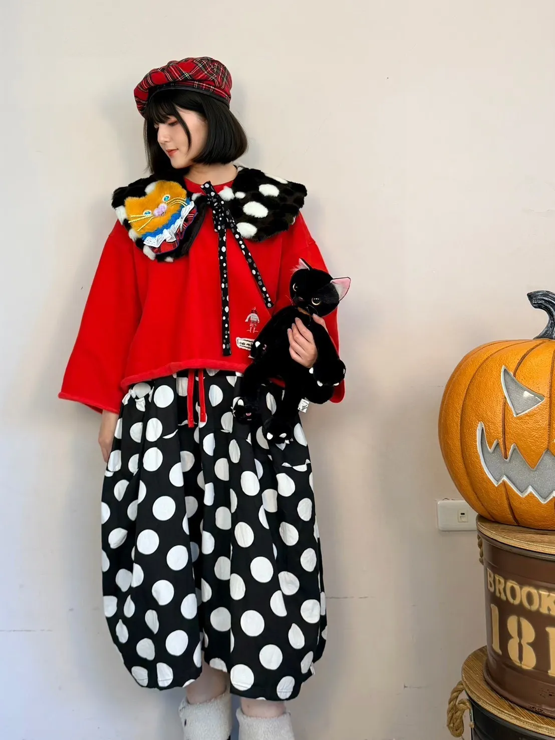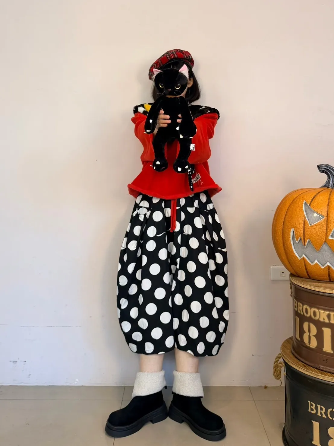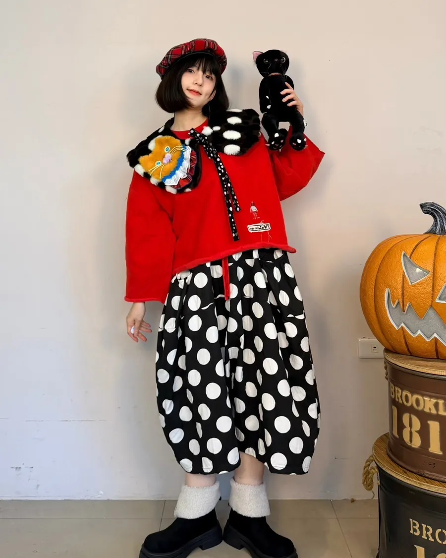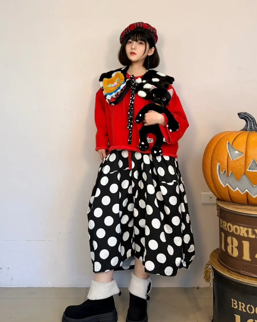 日系點點寬褲