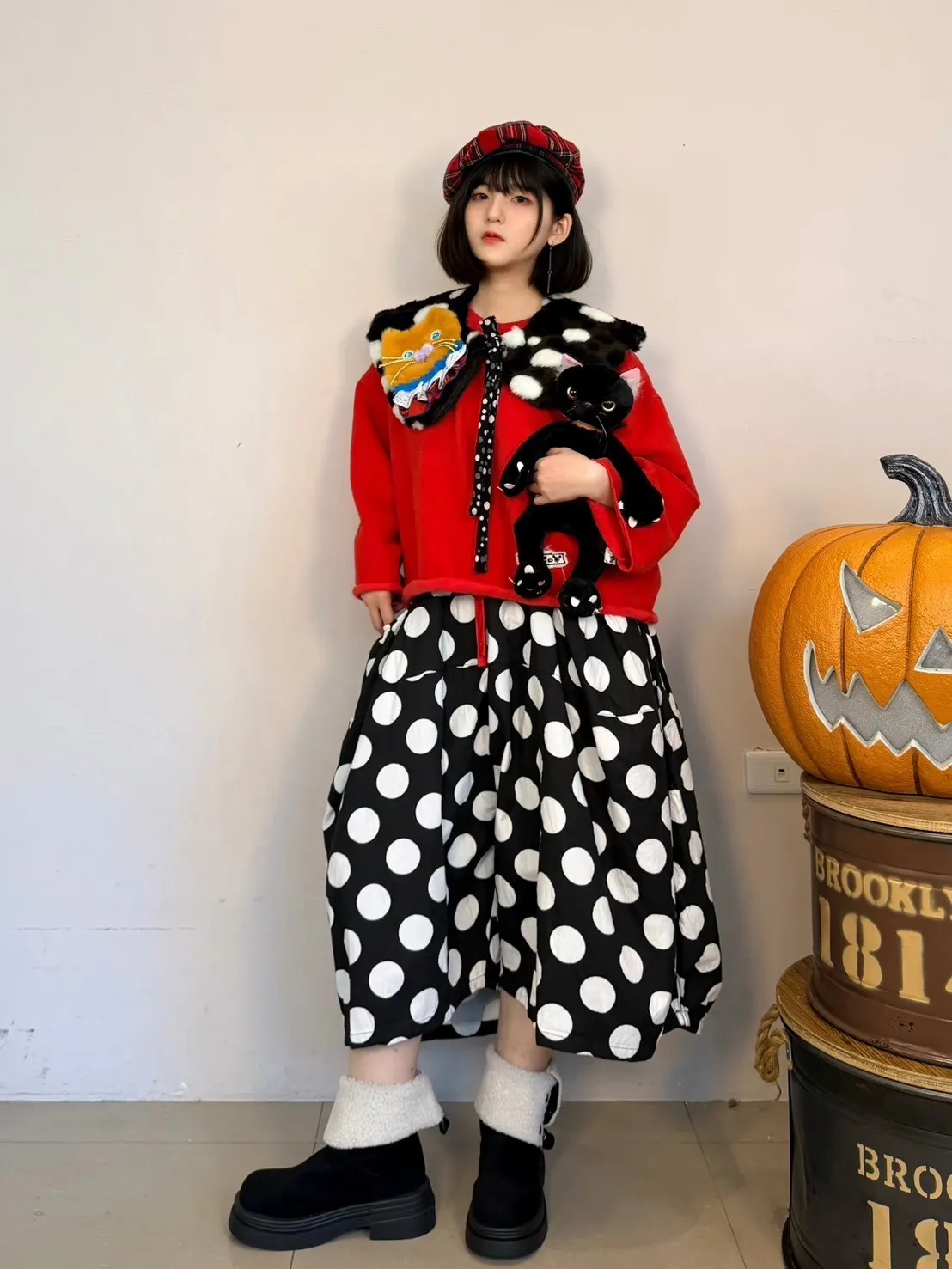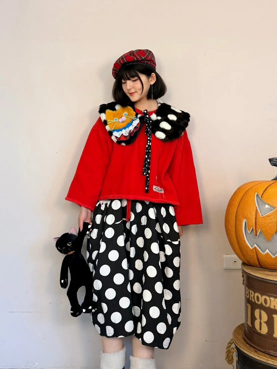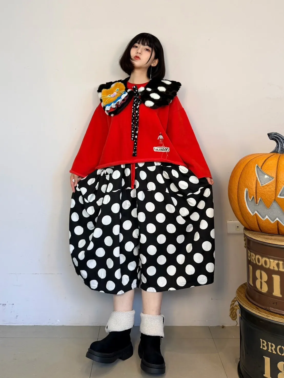 日系點點寬褲